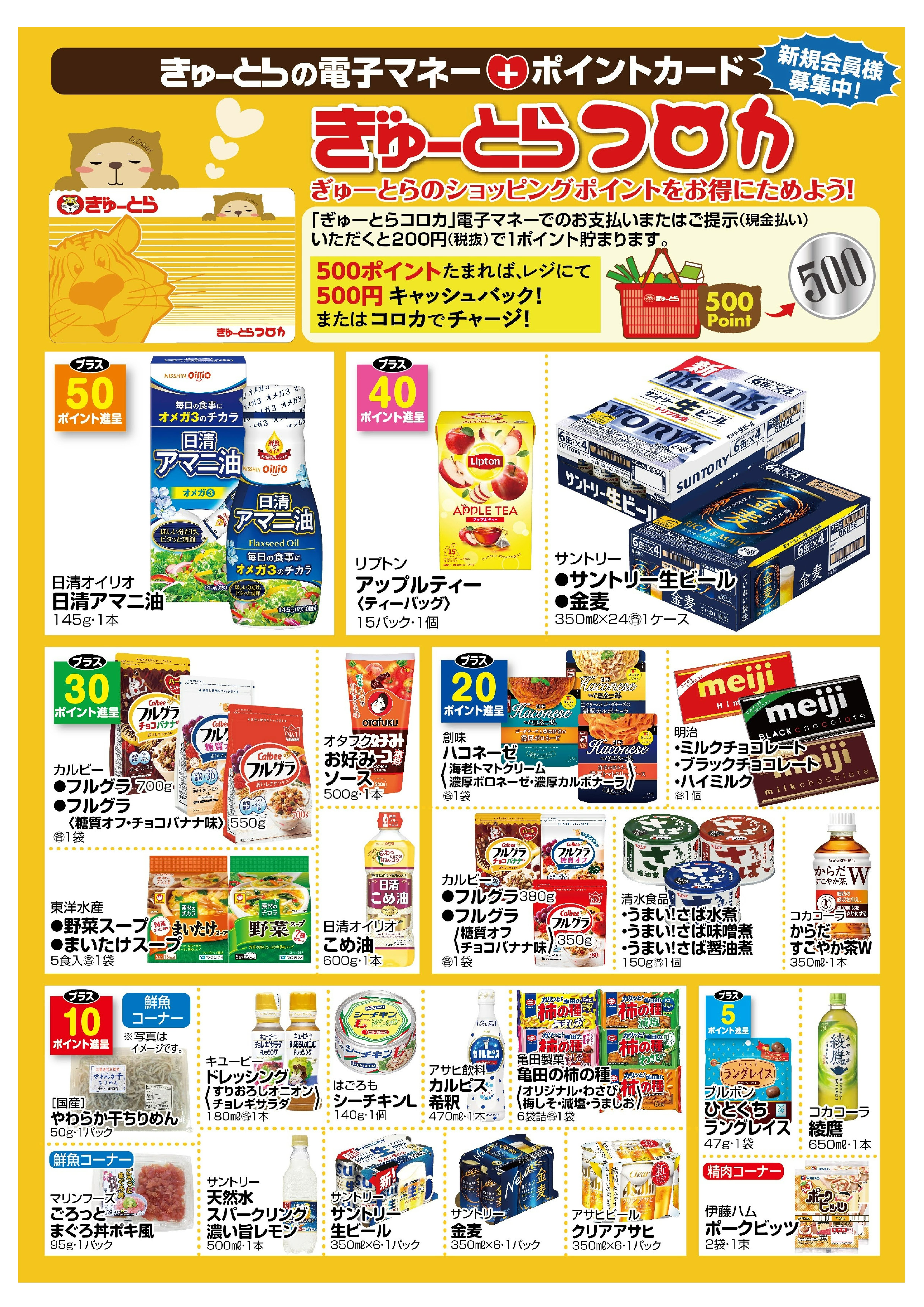イチオシ ぎゅーとらコロカポイント_10月 2025.10.01 ぎゅーとらコロカ電子マネーでのお支払いでぎゅーとらショッピングポイントプレゼント!ポイント対象期間は2025年10/1(水)~10/31(金)まで