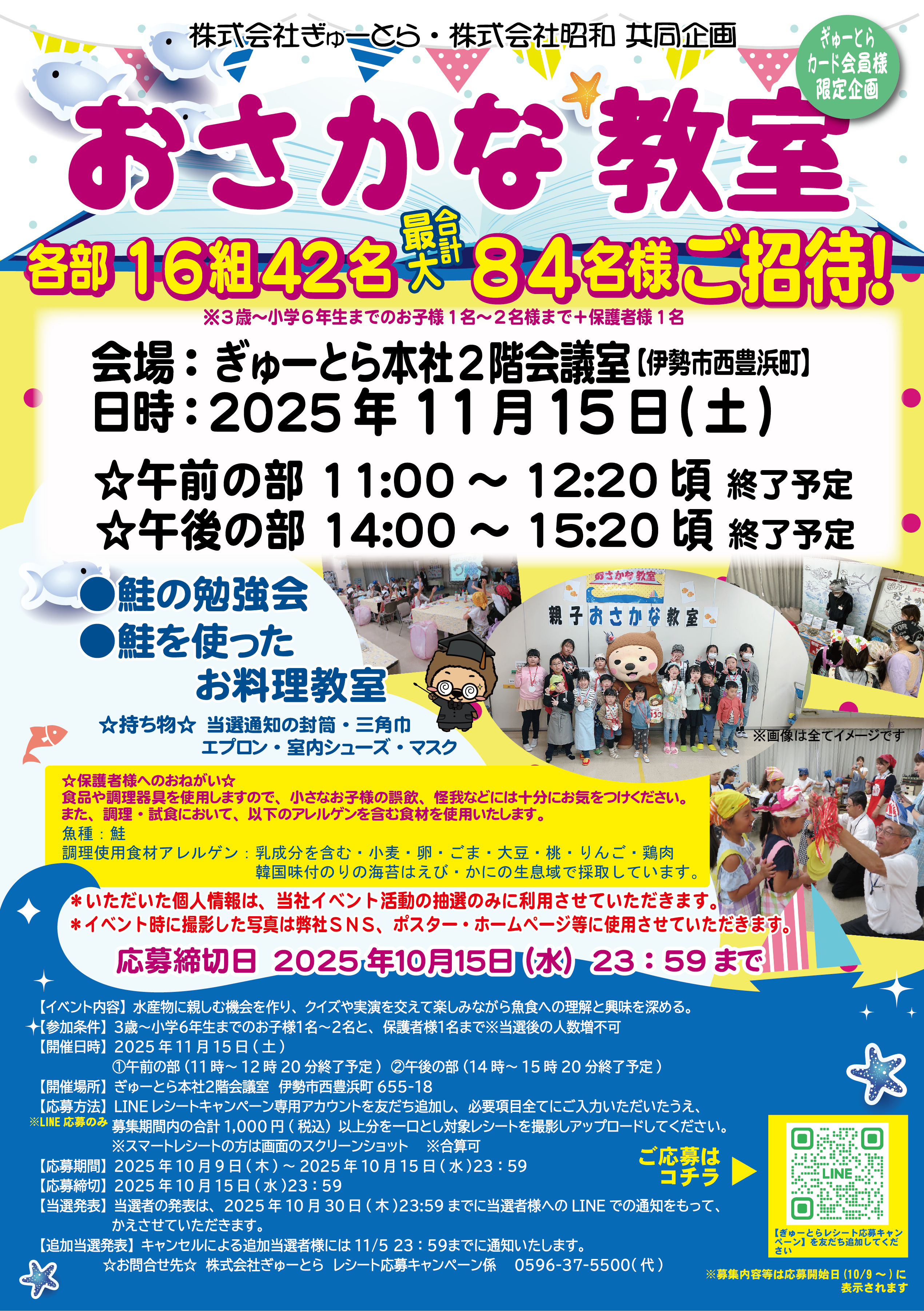 ㈱昭和様×ぎゅーとら共同企画 おさかな教室参加応募のご案内