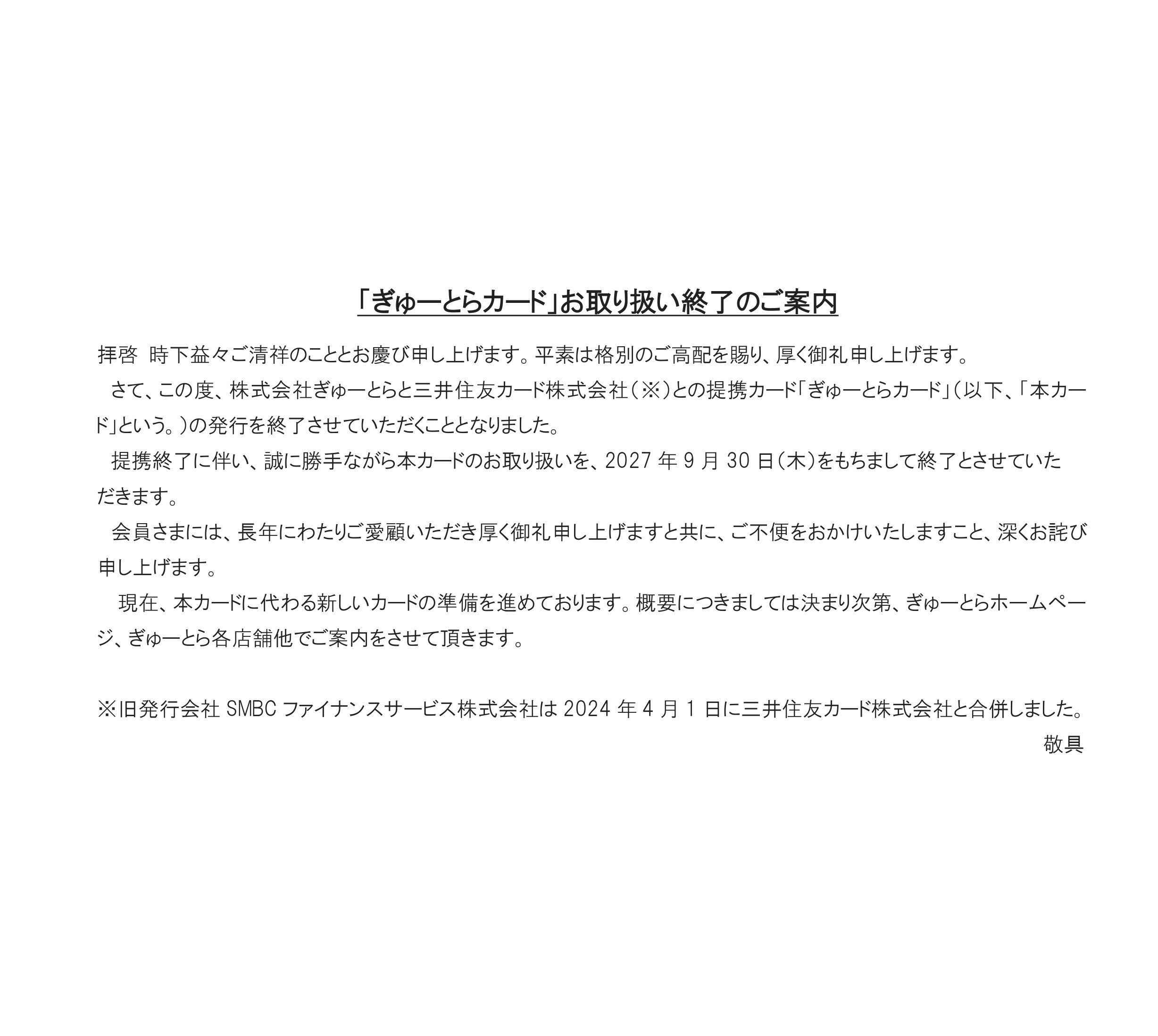 「ぎゅーとらカード」お取り扱い終了のご案内