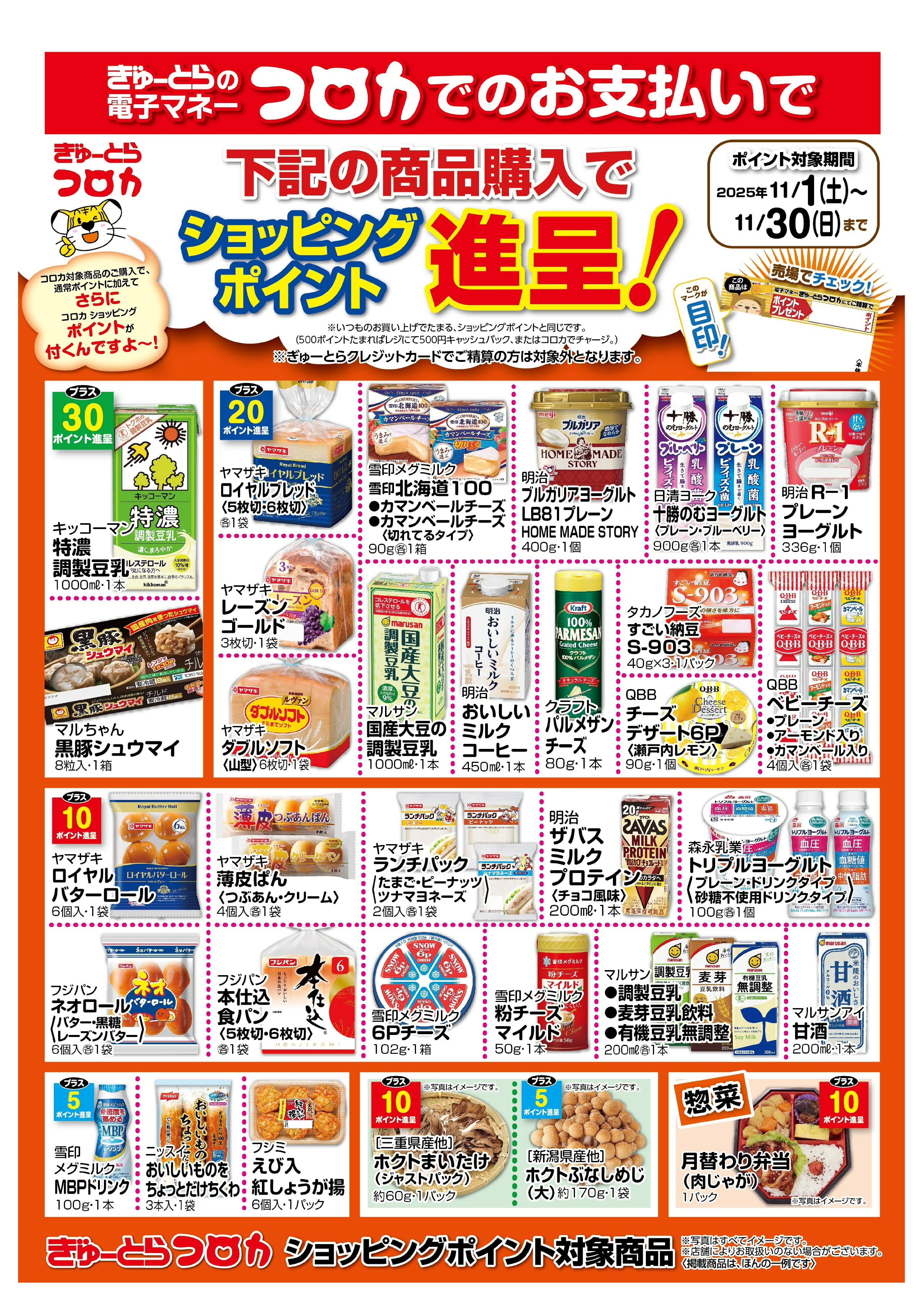 イチオシ ぎゅーとらコロカポイント_11月 2025.11.01 ぎゅーとらコロカ電子マネーでのお支払いでぎゅーとらショッピングポイントプレゼント!ポイント対象期間は2025年11/1(土)~11/30(日)まで