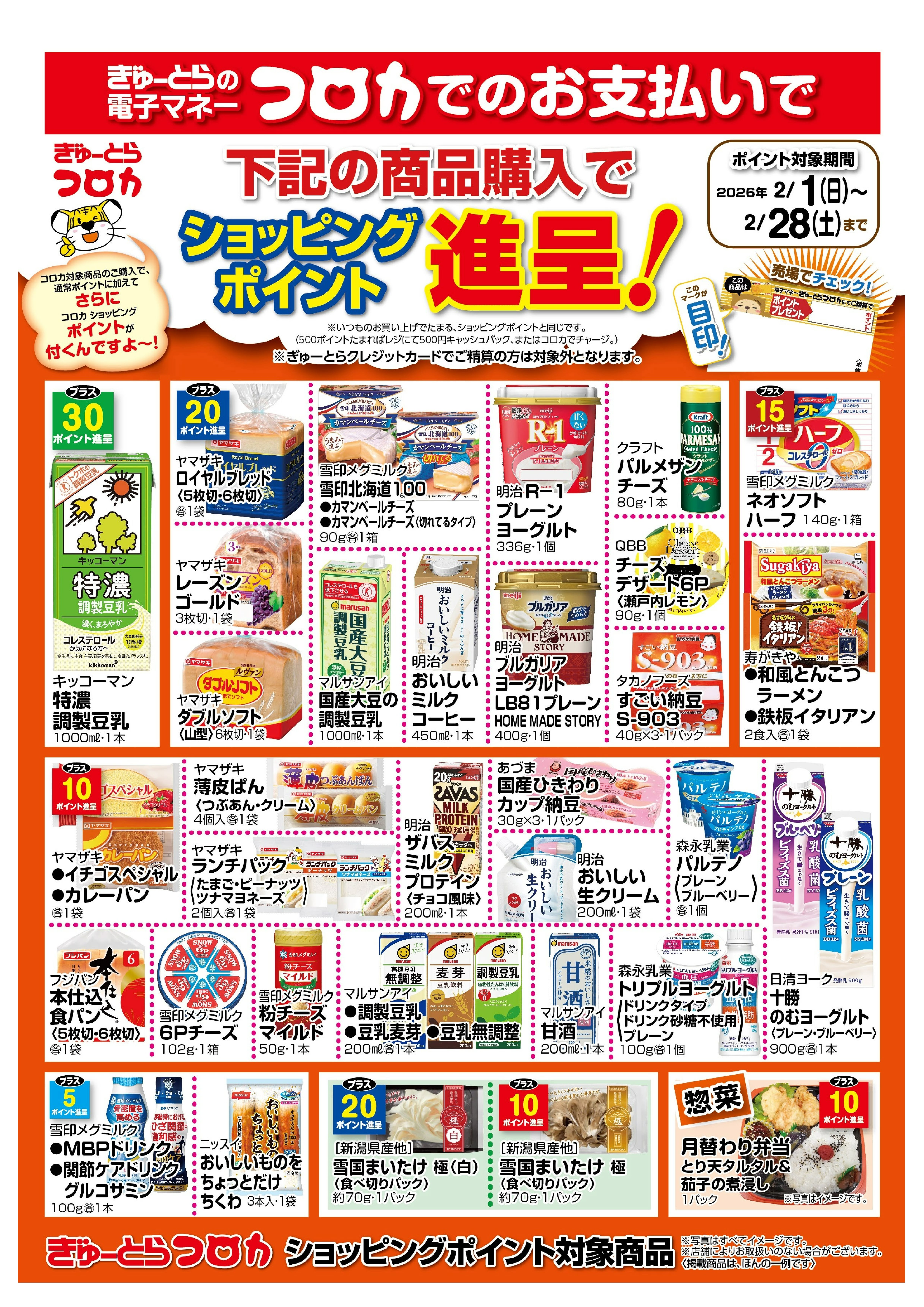 イチオシ ぎゅーとらコロカポイント_2月 2026.02.01 ぎゅーとらコロカ電子マネーでのお支払いでぎゅーとらショッピングポイントプレゼント!ポイント対象期間は2026年2/1(日)~2026年2/28(土)まで
