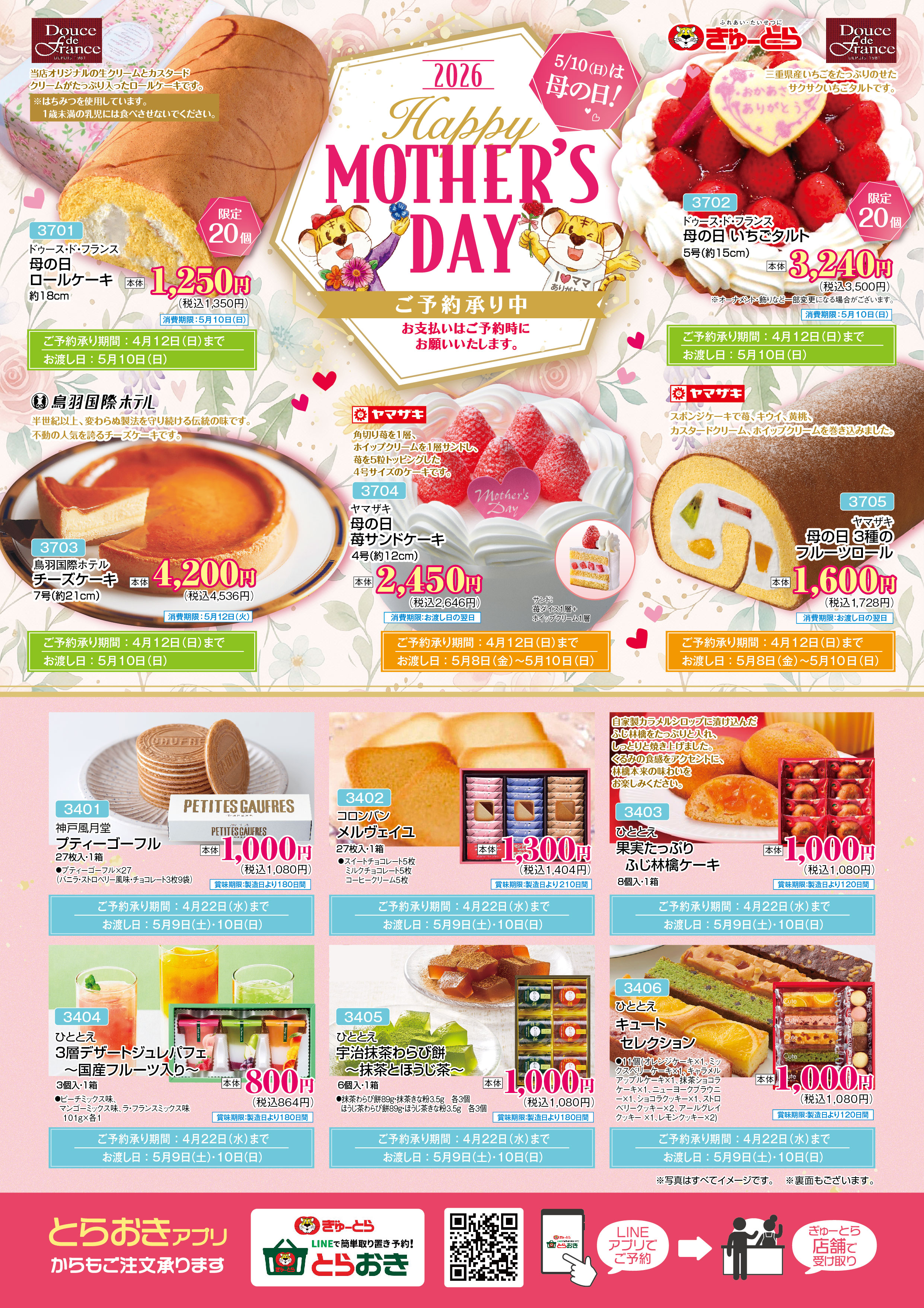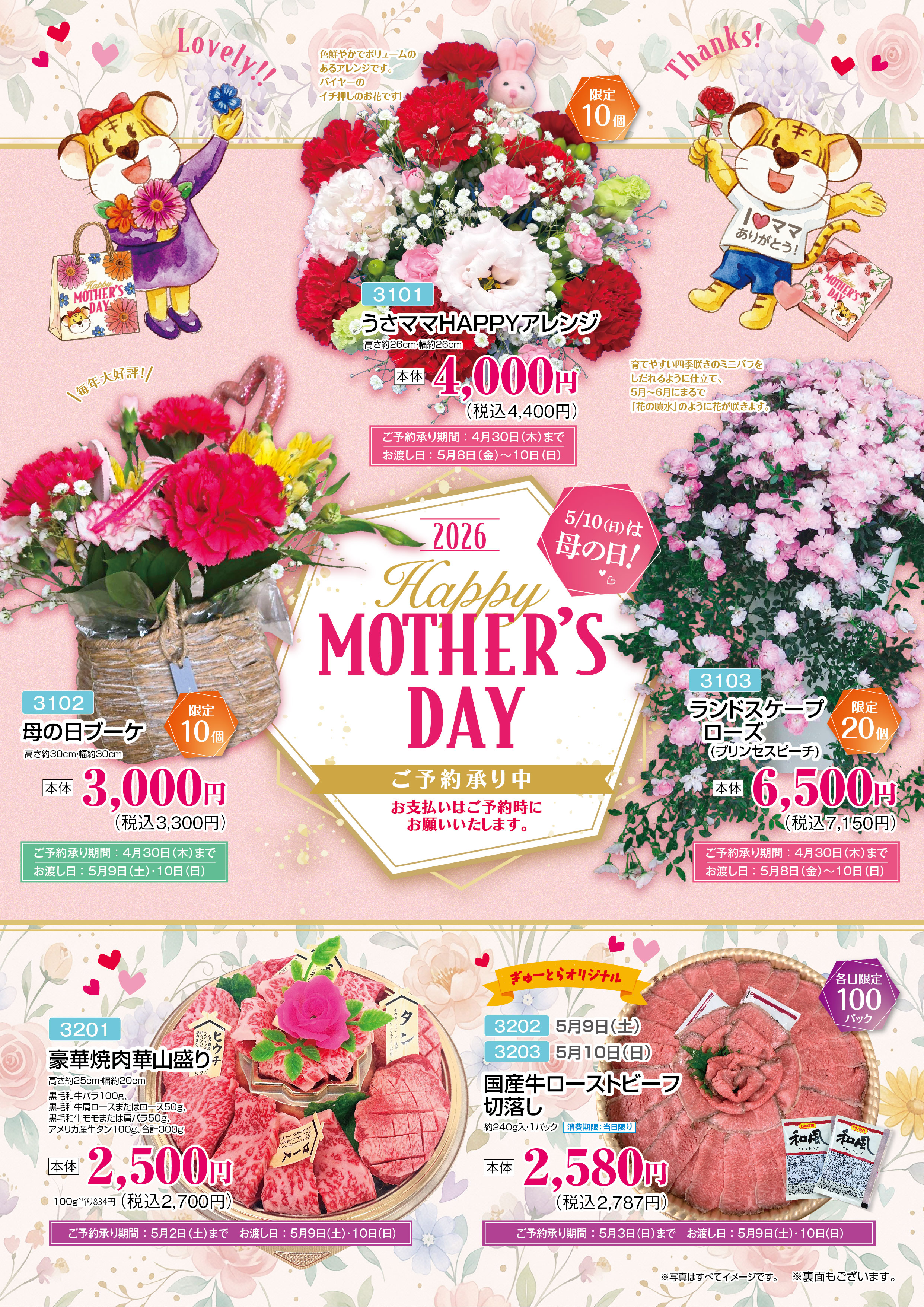 只今の期間「こどもの日」「母の日」向けにおすすめの商品ご予約承り中です。