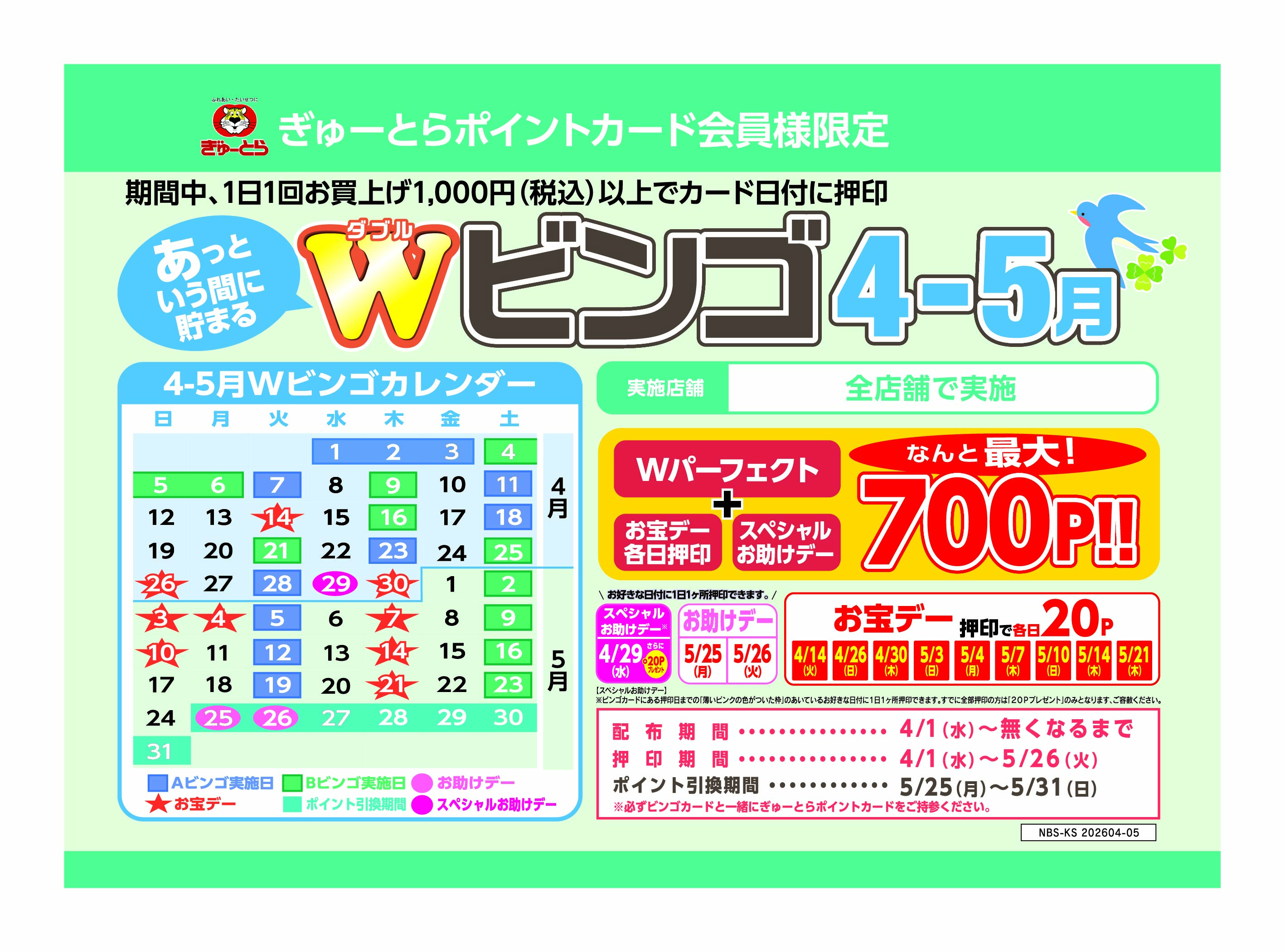 4月-5月Wビンゴ開催中です!!